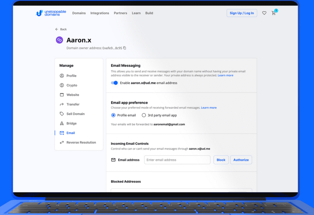 Instoppabile Dominio NFT,Notizie,Supporto Ora i domini nft sono anche un sistema di email decentralizzata
