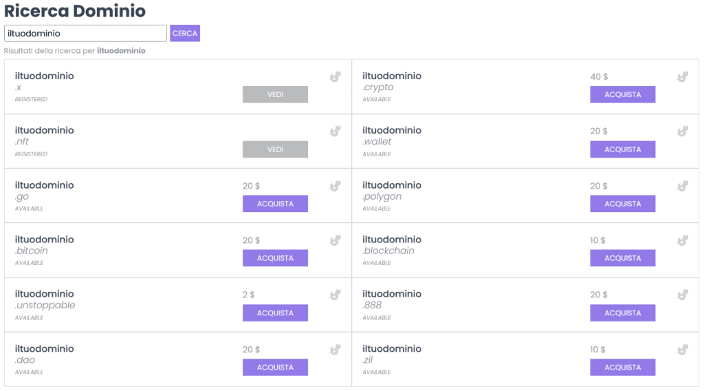 Grazie a UDPremium, la ricerca di domini diventa intuitiva e accessibile. Instoppabile.it offre un’interfaccia potenziata che facilita la scoperta e l’acquisto di domini Unstoppable Domains. Siamo la guida affidabile per chiunque voglia navigare nell’universo dei domini decentralizzati.
